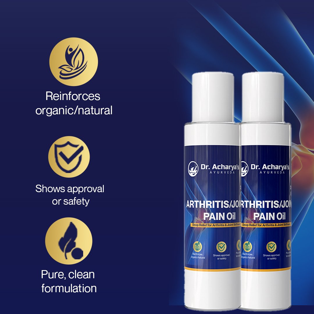 Arthritis / Joint Pain Oil by Dr. Acharya’s Ayurveda is a specially formulated Ayurvedic oil designed to provide deep soothing care for joint stiffness, arthritis discomfort, and mobility concerns. Enriched with traditional herbal extracts, this therapeutic oil supports natural joint flexibility and muscle relaxation.