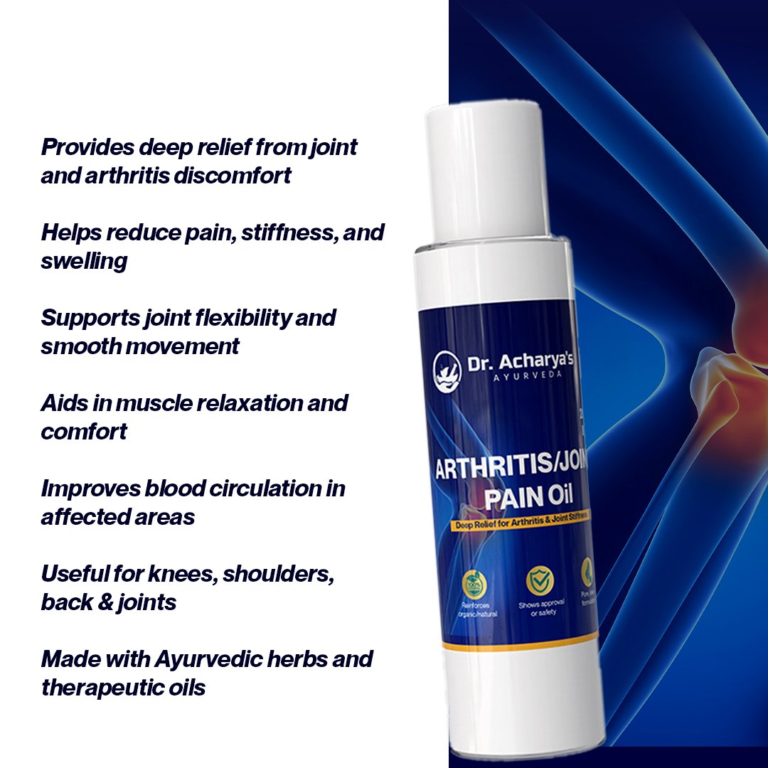 Arthritis / Joint Pain Oil by Dr. Acharya’s Ayurveda is a specially formulated Ayurvedic oil designed to provide deep soothing care for joint stiffness, arthritis discomfort, and mobility concerns. Enriched with traditional herbal extracts, this therapeutic oil supports natural joint flexibility and muscle relaxation.