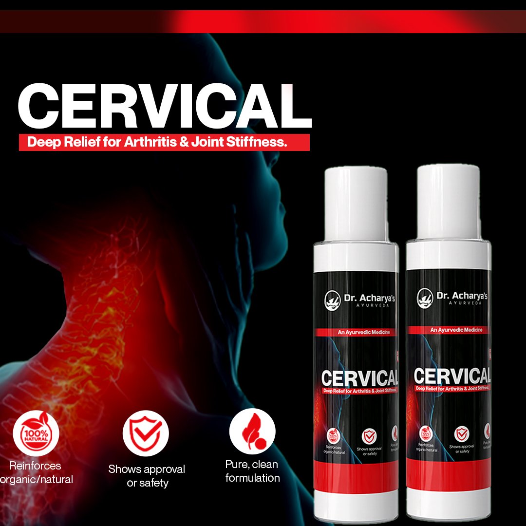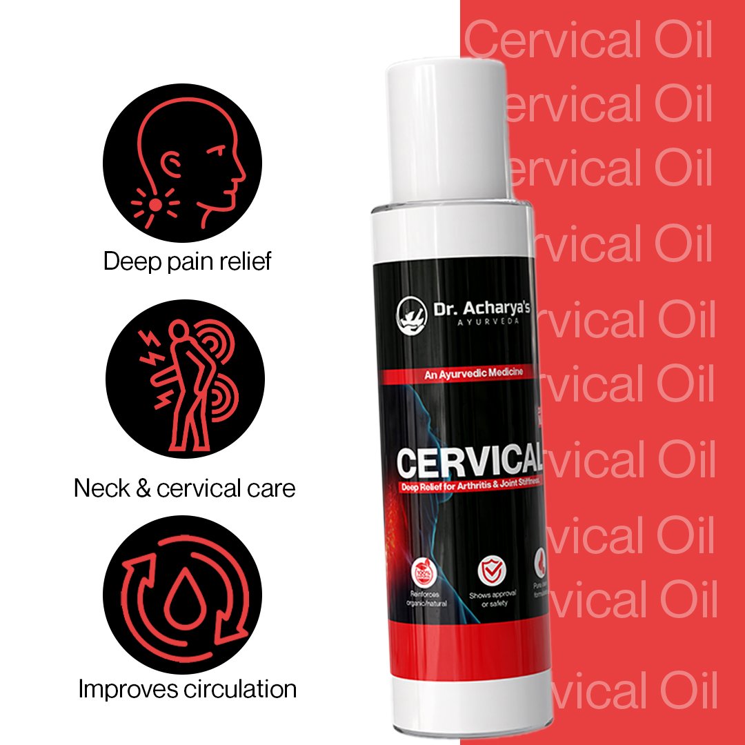 Cervical Oil by Dr. Acharya’s Ayurveda is a specially formulated Ayurvedic oil designed to provide deep soothing care for neck stiffness, cervical discomfort, and joint-related issues. Enriched with traditional therapeutic herbs, this oil supports muscle relaxation and promotes improved flexibility in the cervical and upper back region.