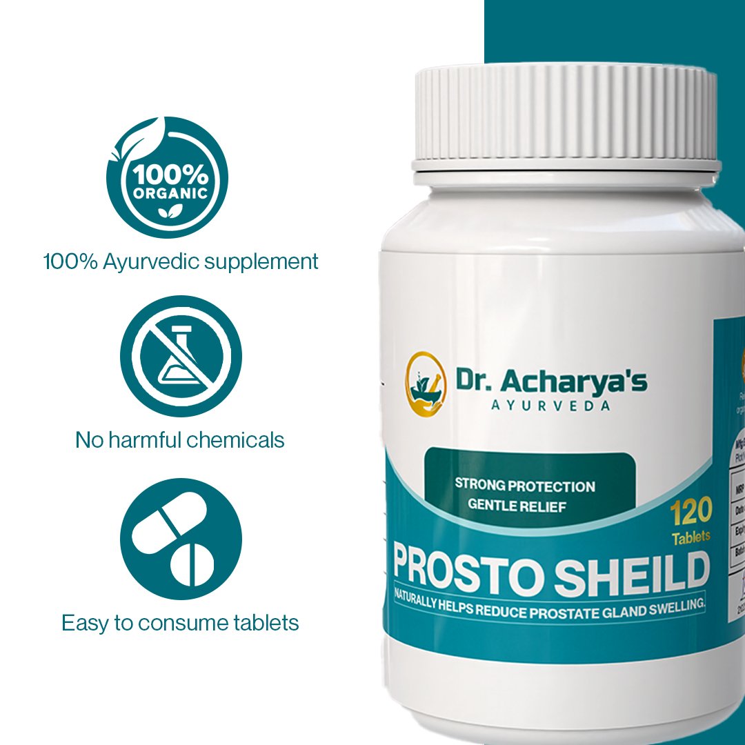 Prosto Shield by Dr. Acharya’s Ayurveda is a carefully formulated Ayurvedic supplement designed to support prostate health and urinary wellness in men. Prepared using traditional herbal ingredients, this formulation helps maintain prostate comfort and promotes healthy urinary function.